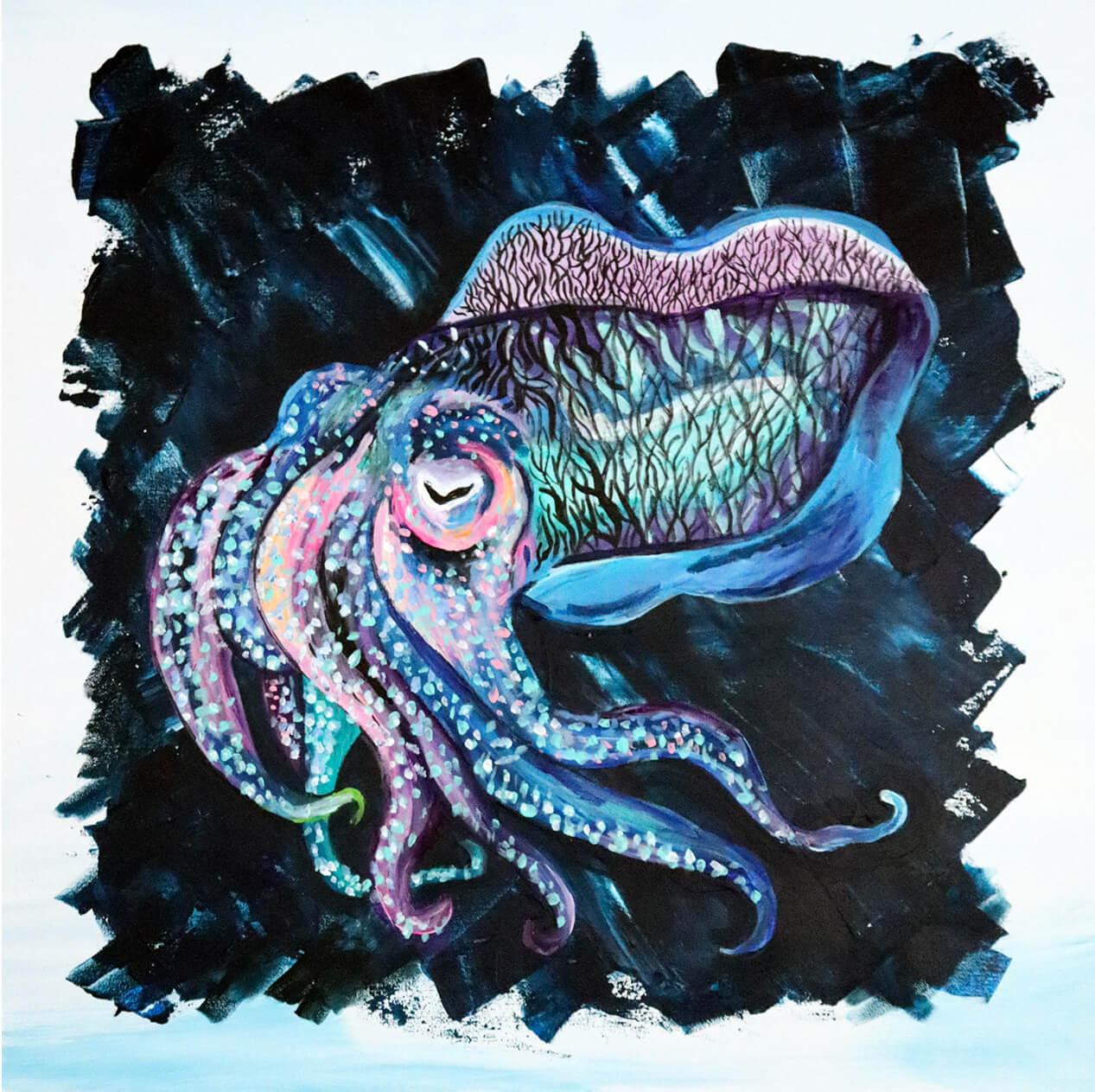 The octopus is one of my favourite animals. Their intelligence, gracefulness and beauty is something that takes my breath away everytime i see them. This is an acrylic painting unframed.