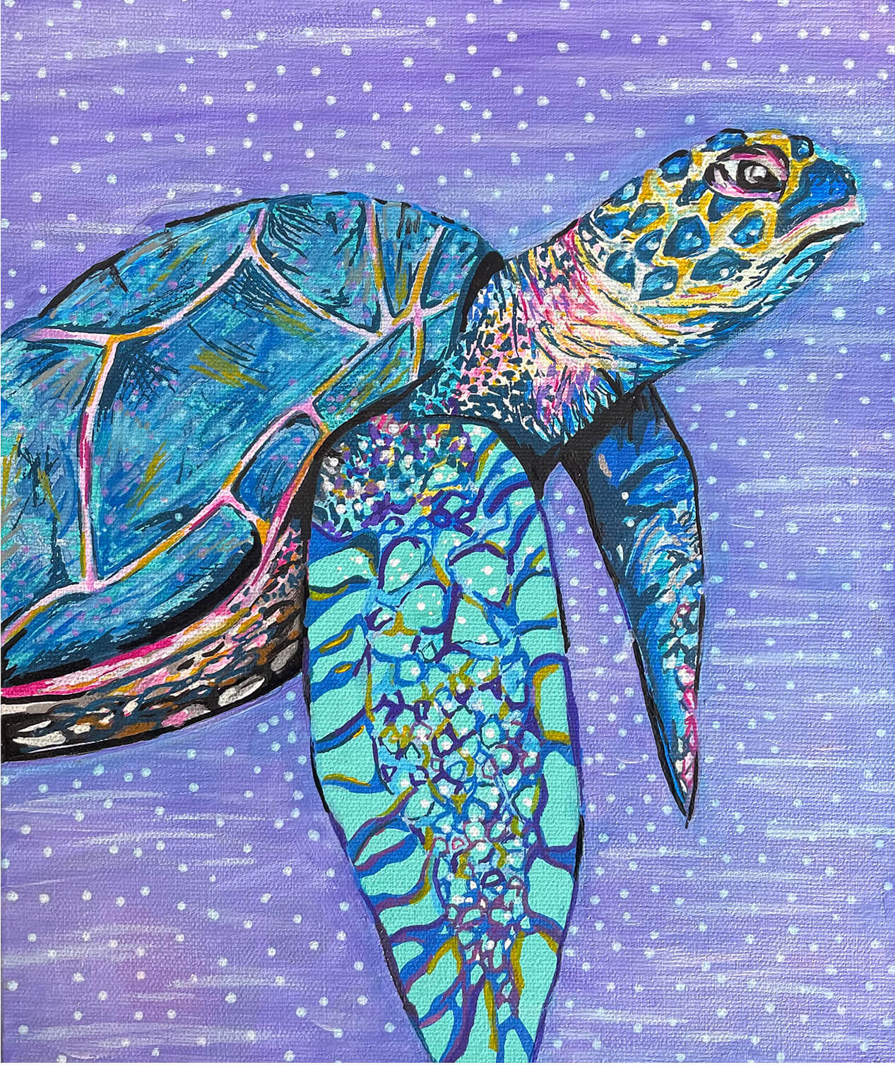 I'm fascinated by our underwater widlife including the turtle which defies all odds to even make it from the inside of an egg to the ocean. These resilient beauties are creatures i always love to paint. Unframed