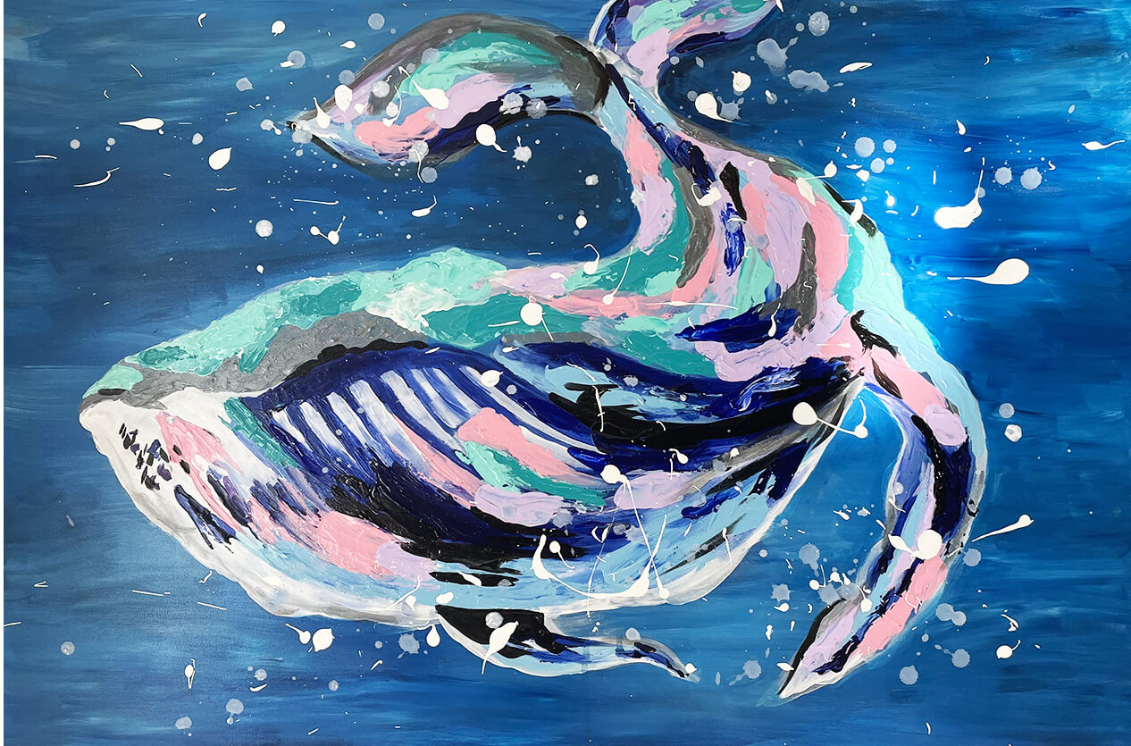 Acrylic abstract Humpback whale breaching. Unframed.