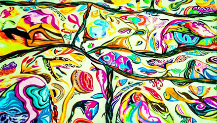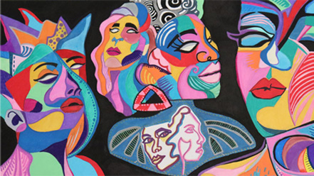 Abstract bright multimedia artwork showcasing the strength and beauty of women in many forms. Canvas unframed